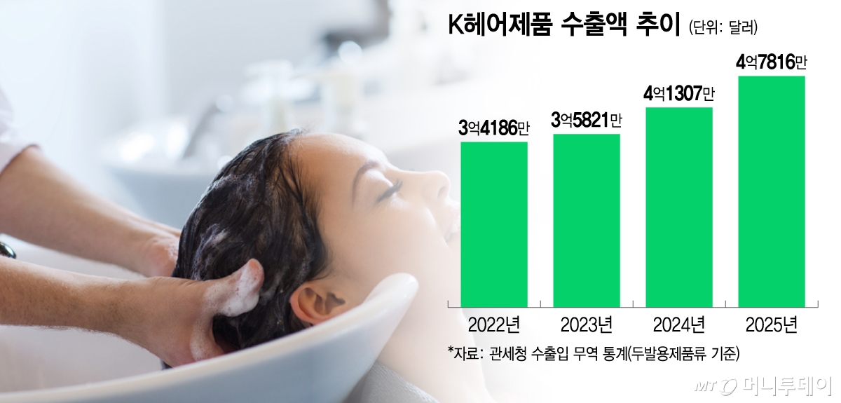 9일 관세청 수출입통계에 따르면 지난해 두발용 제품류 수출액은 4억7817만달러(한화 약 7138억)로 전년 대비 15.7% 증가했다. 2022년 이후 수출 규모가 꾸준히 확대되며 안정적인 성장세를 이어가고 있다. 스킨케어 중심이던 K뷰티 수출 구조가 점차 헤어케어 분야로까지 넓어지고 있다는 분석이 나온다.