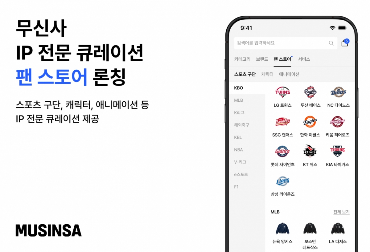 무신사가 스포츠 구단, 캐릭터 등 IP(지식재산권) 관련 상품을 판매하는 서비스 '팬 스토어(FAN STORE)'를 출시했다. 유통 플랫폼을 넘어 팬덤 문화와 패션을 잇는 생태계를 구축한다는 구상이다.