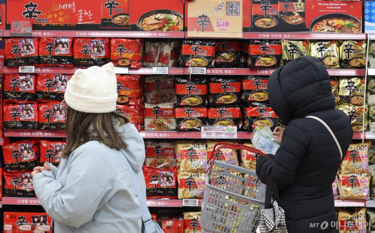 ![[서울=뉴시스] 추상철 기자 = 12일 오후 서울시내 한 대형마트에서 외국인 관광객이 라면을 고르고 있다. 2026.01.12. scchoo@newsis.com /사진=추상철](https://thumb.mt.co.kr/cdn-cgi/image/f=avif/21/2026/03/2026031115272675951_1.jpg)