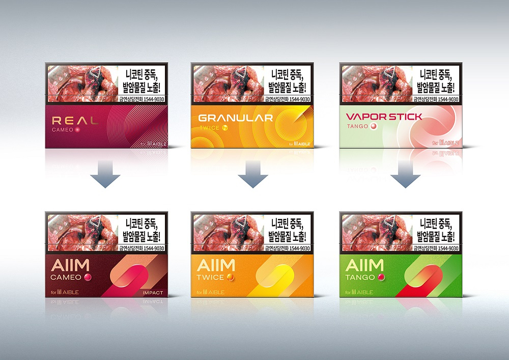 이번 리뉴얼을 통해 '릴 에이블' 전용스틱인 리얼 4종, 그래뉼라 6종, 베이퍼스틱 1종까지 총 11종의 제품이 '에임' 브랜드로 통합된다. 이에 따라 '릴 에이블' 전용스틱은 다양한 기호를 충족시킬 수 있는 4800원급 '에임(AIIM)' 11종과 담배 본연의 풍미를 강조한 4500원급 '레임(RAIIM)' 4종으로 구성돼 총 15종이 운영된다. 리뉴얼된 제품은 기존 재고 소진 이후 순차적으로 판매점에 입점될 예정이다.