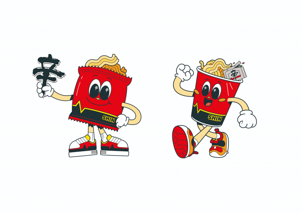 라면 면발과 신라면 봉지를 연상시키는 디자인을 바탕으로 눈동자와 소품에 '辛(매울 신)' 자를 포인트로 활용했다. 신발과 몸통에는 맥박이 뛰는 펄스(Pulse) 디자인을 적용해 생동감을 살렸다.