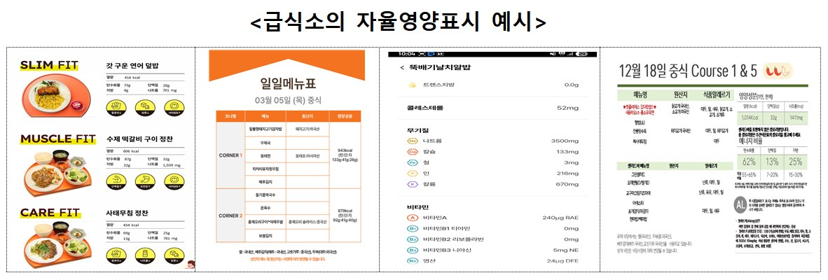 지난해까지 4만7000여개 음식점 등에서 영양성분을 자율적으로 표시했다. 식약처는 올해 해당 제도를 집단급식소까지 확대해 급식의 영양정보도 확인할 수 있도록 추진할 방침이다.