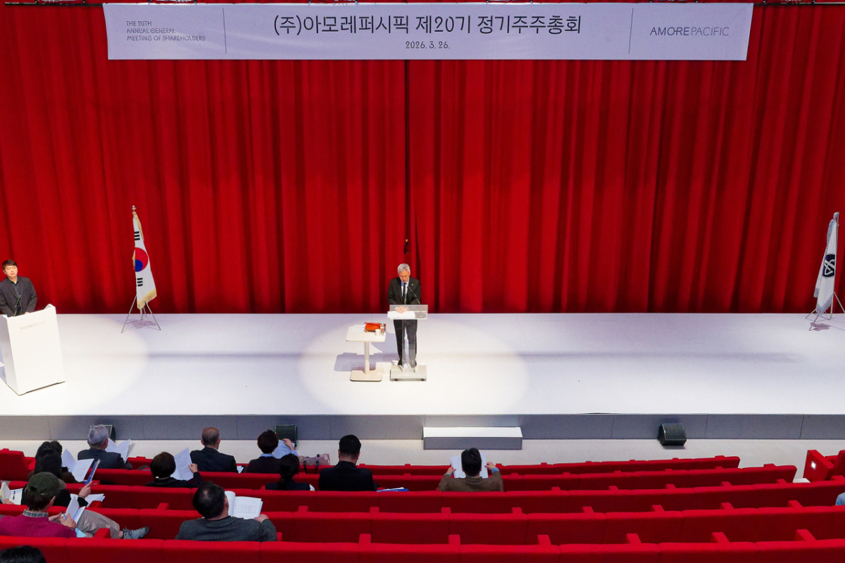 김승환 아모레퍼시픽 대표이사는 26일 서울 용산구 아모레퍼시픽 본사에서 진행된 정기주주총회에서 "글로벌 리밸런싱과 수익 기반 체질 개선 전략의 성과가 본격적으로 나타나고 있다"며 "올해는 비즈니스 성장세를 더욱 확대하고 글로벌 영향력을 강화하는 데 집중하겠다"고 밝혔다.