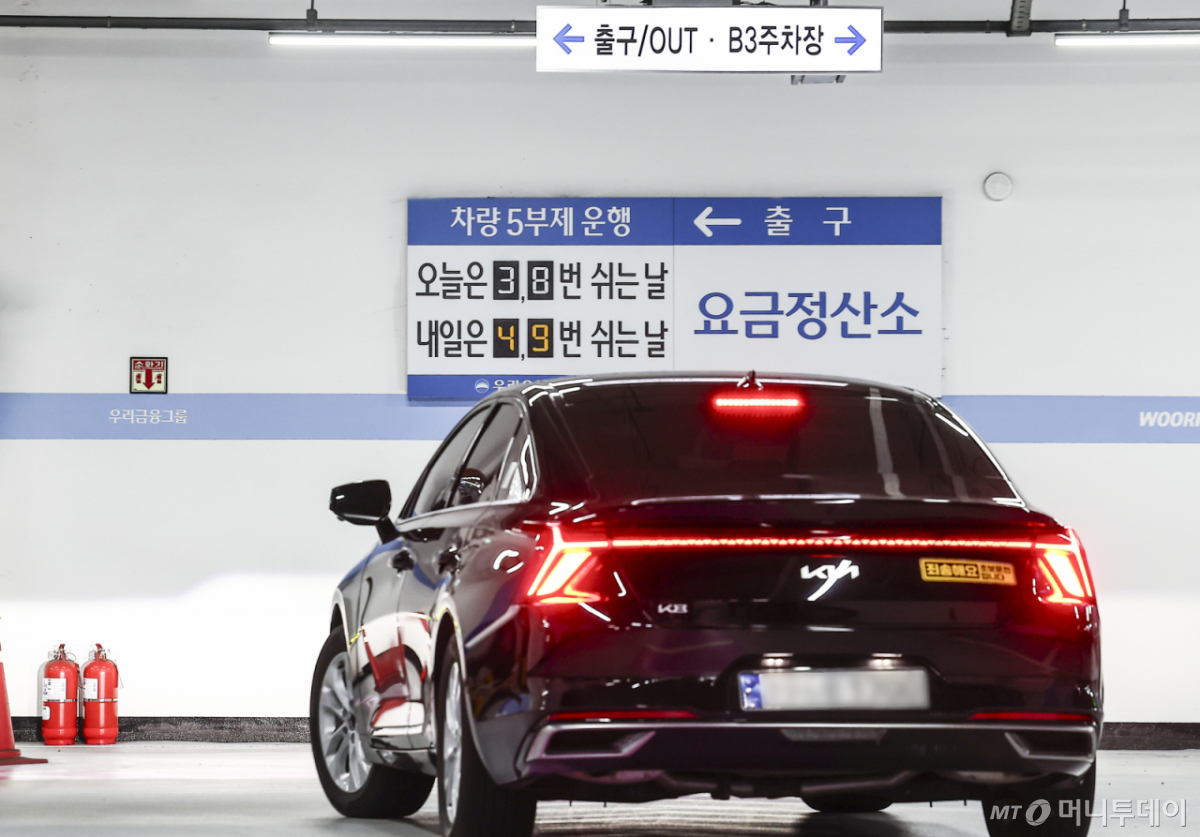 ![[서울=뉴시스] 김근수 기자 = 5일 오전 서울 중구 우리은행 본점 주차장에 차량 5부제 안내문이 붙어 있다. 2026.03.25. ks@newsis.com /사진=김근수](https://thumb.mt.co.kr/cdn-cgi/image/f=avif/21/2026/03/2026032709412331264_1.jpg)