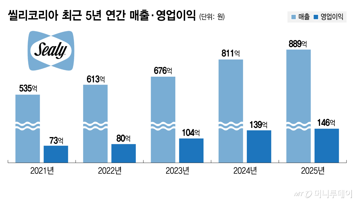 국내에 씰리침대를 판매하는 씰리코리아가 지난해 사상 최대 매출을 기록했다. 2021년 처음 연매출 500억원을 넘긴 데 이어 약 5년 만에 1000억원 달성 목표가 가시권에 들어왔다.