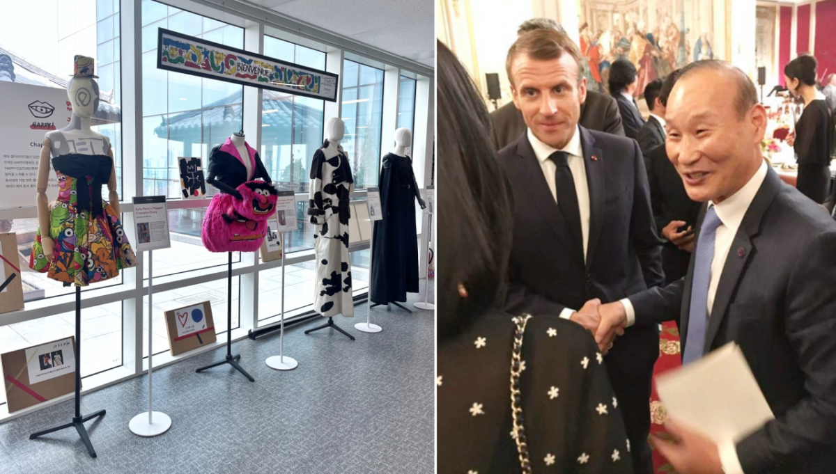 패션그룹형지가 에마뉘엘 마크롱 대통령의 방한을 계기로 까스텔바작 아카이브 작품을 공개하며 한·불 문화 교류의 의미를 강조했다.