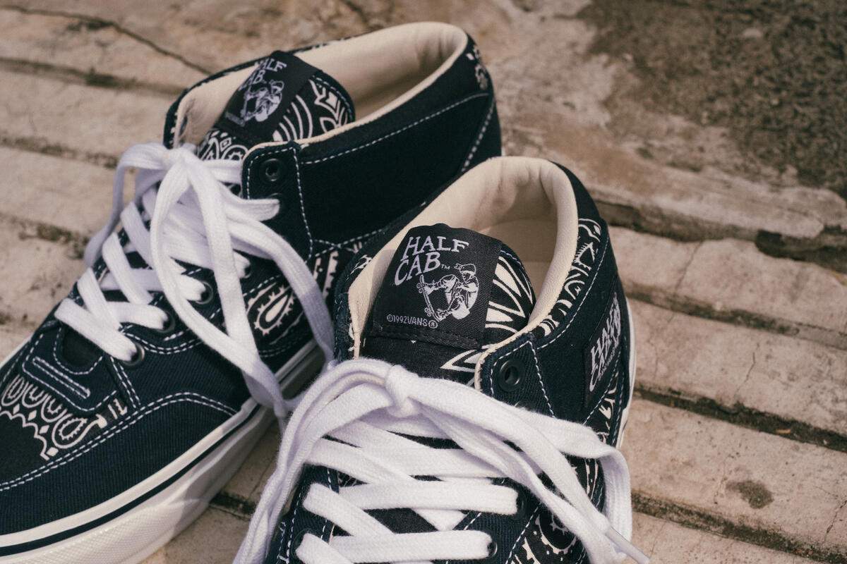 이번 컬렉션은 반스의 대표 모델인 어센틱과 하프캡을 기반으로, 디렉터 와타나베 마사후미의 개인적 경험에서 출발한 반다나 커스터마이즈 감성을 담아낸 것이 특징이다. 두 모델 모두 깊은 인디고 톤의 다크 네이비 컬러로 통일해 절제된 디자인을 완성했다.