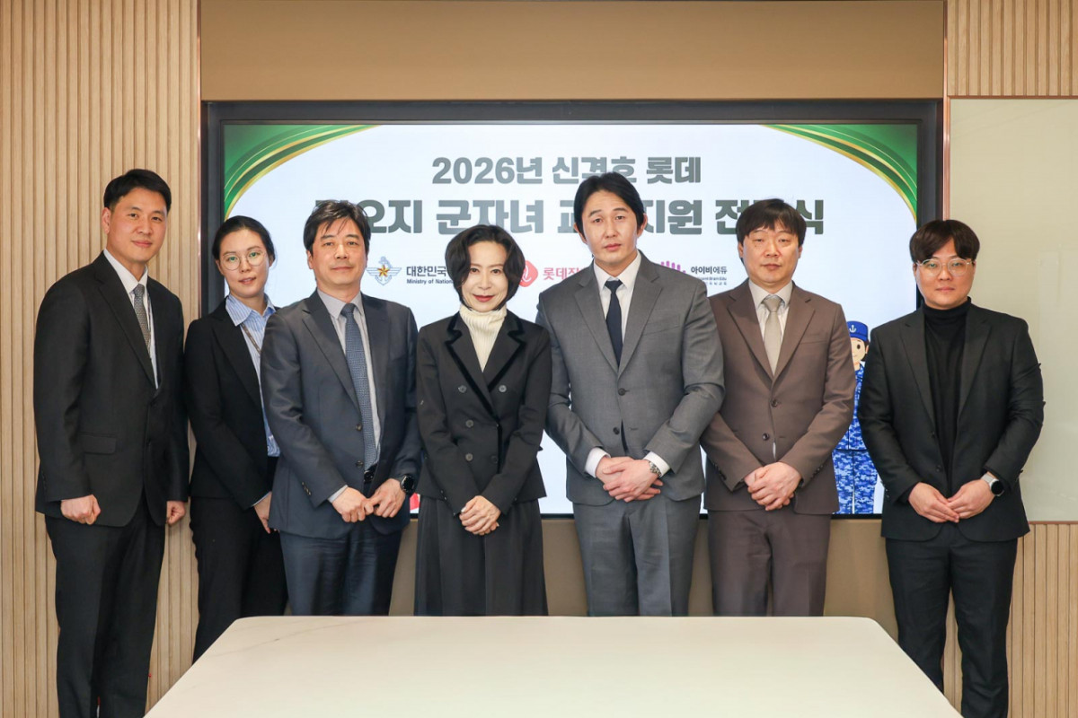 롯데장학재단은 지난 7일 서울 중구 재단 회의실에서 '2026 신격호 롯데 격오지 군자녀 교육지원' 전달식을 열고 2억원 규모의 지원을 약속했다. 해당 사업은 교육 인프라가 부족한 지역에 근무하는 직업군인 자녀의 학습 환경 개선을 목적으로 지난해부터 국방부와 협력해 운영되고 있다.