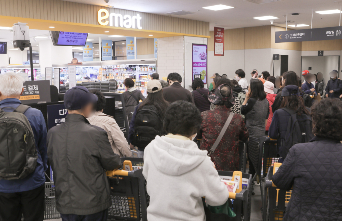 이마트 관계자는 "매장 오픈 직후 50% 할인 행사 상품인 국내산 삼겹살, 1+등급 한우 등심, 2개 이상 구매 시 50% 할인한 올리브오일 매대에 고객이 몰렸다"고 설명했다.