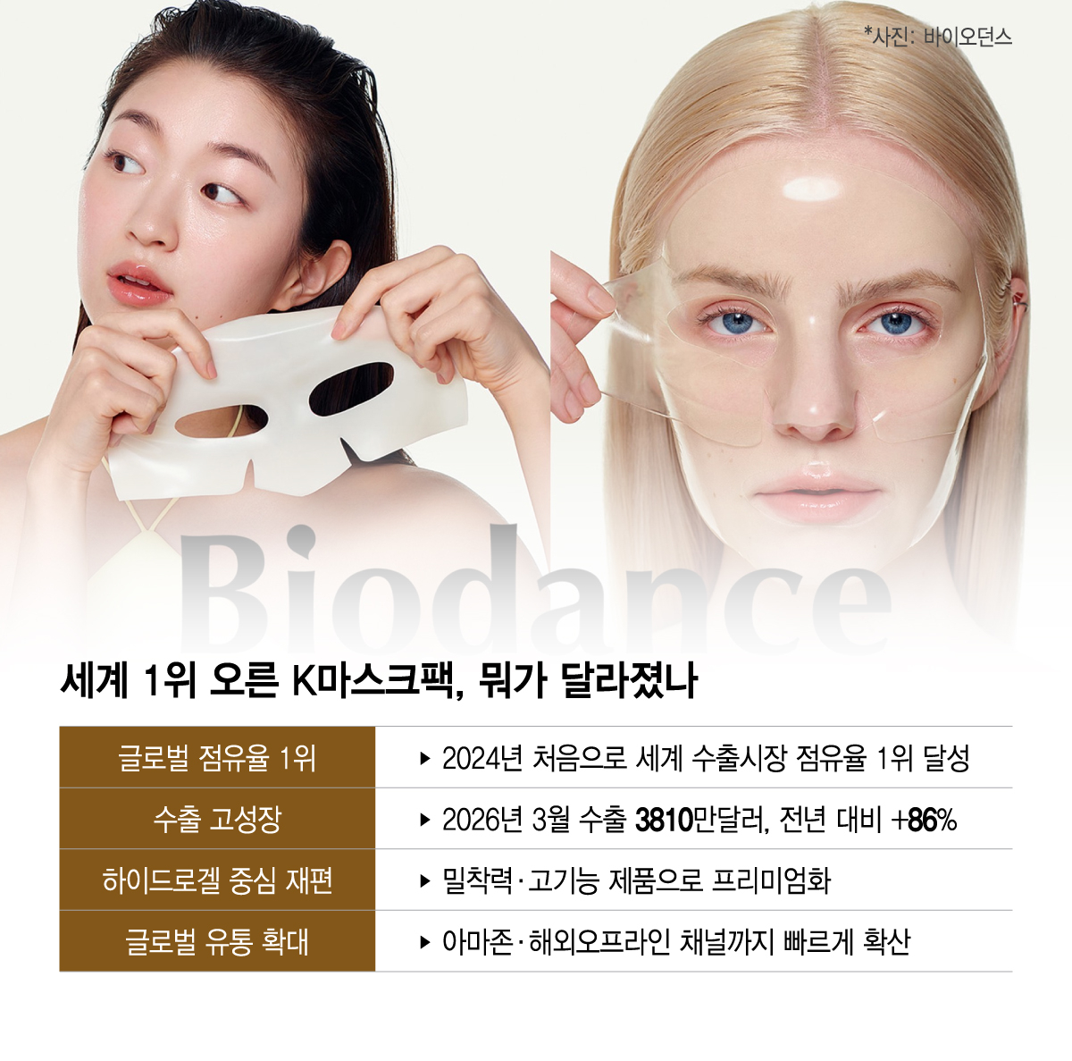 박종대 메리츠증권 애널리스트는 "하이드로겔 마스크팩은 바이오던스를 기점으로 시장이 본격 확대된 이후 메디힐, 토리든, 아누아, 성분에디터 등 주요 브랜드들이 잇따라 제품군을 확장하며 경쟁이 빠르게 격화하는 모습"이라고 평가했다.