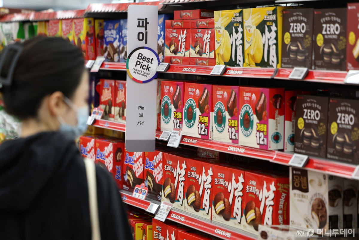 ![[서울=뉴시스] 김선웅 기자 = 29일 서울 소재 대형마트에서 오리온 초코파이가 판매되고 있다. 2025.10.29. mangusta@newsis.com /사진=김선웅](https://thumb.mt.co.kr/cdn-cgi/image/f=avif/21/2026/04/2026042208230730289_1.jpg)