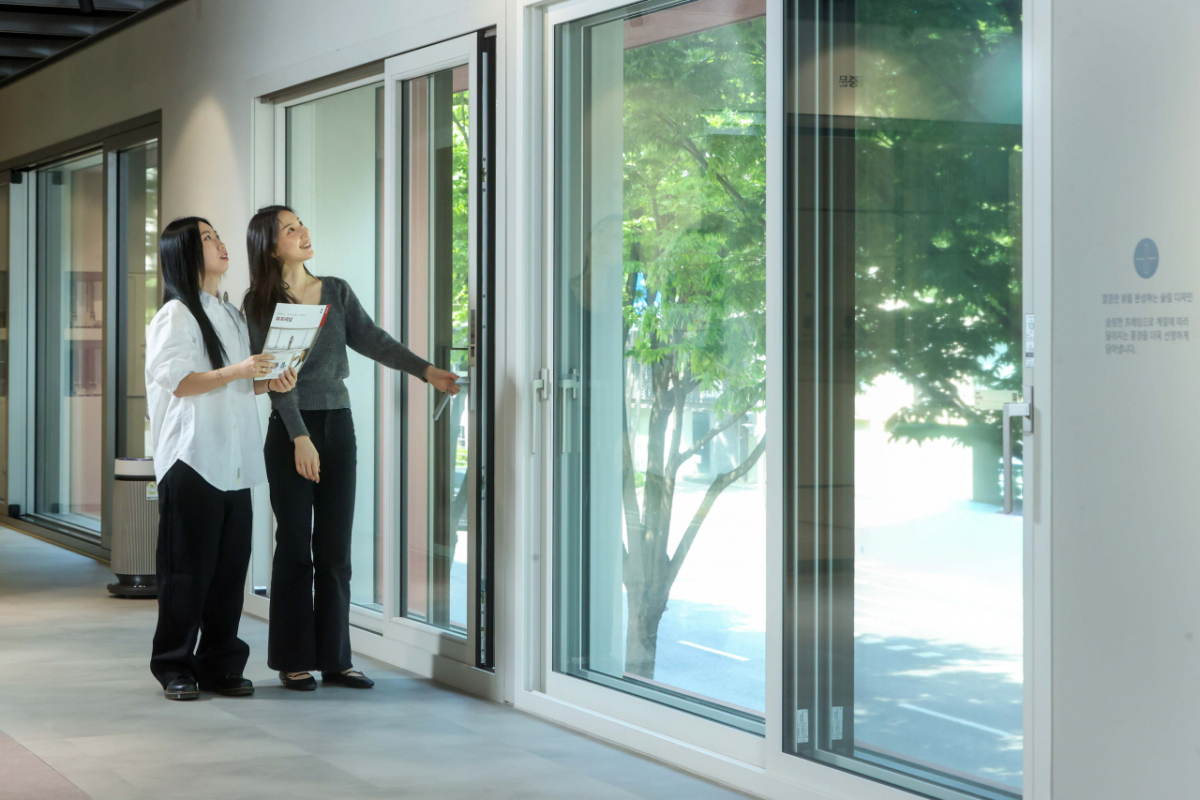 매장은 층별로 체험 동선을 차별화했다. 1층은 브랜드 이해를 돕는 공간으로 과거 국민제품이었던 '하이샤시' 창호와 '깔끄미' 바닥재부터 최근 인기 제품인 '뷰프레임' 창호·'에디톤' 바닥재·'디아망' 벽지까지 비교 전시해 기술 변화와 디자인 흐름을 한눈에 볼 수 있도록 했다.
