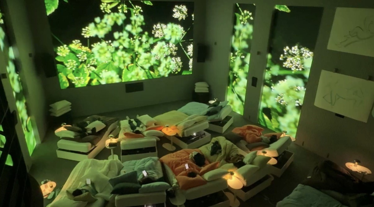 # 지난달 28일 오후 서울 성동구 성수 음악 복합문화공간 성수율(SEONGSU YUL) 3층. 영화관 같은 공간에 침대 24개가 가지런히 놓였다. 침대 위엔 형형색색의 침구세트가 있었는데, 평소 좋아하는 연두색 배개가 있는 침대에 누웠다. 푹신한 느낌에 곧바로 잠이 올 것 같았다. 바로 옆 테이블엔 침대의 기울기를 조절하는 리모콘이 눈에 띄었다.