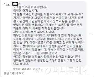 경사노위 자체를 부정하고, 코로나19든 뭐든 투쟁일변도의 목소리만을 가진 민주노총에게는 어느 국민들도 공감하지 못한다.