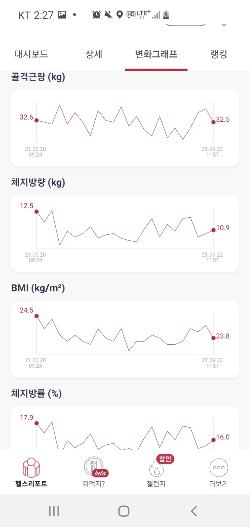 물론 골격근량이 0.1kg줄어든 반면 체지방량은 12.5kg에서 10.9kg으로 감소, 긍정적인 워크아웃 효과가 없지는 않았다.