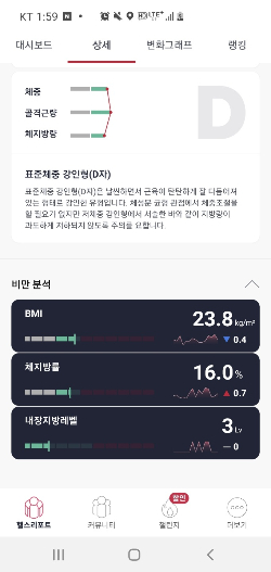 BMI(체질량 지수)는 24.5에서 23.8로 낮아져 추세적 개선은 있었다.