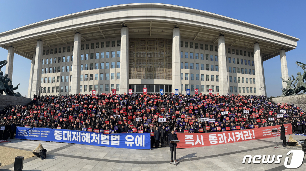 지난달 27일 중대재해법이 예정대로 확대 시행되고 나서야 당정은 '2년 뒤 산안청 설치'로 한발 물러선다. 여야 원내대표 간 합의가 이뤄지면서 지난 1일 국회 본회의에서 중대재해법 유예를 결정할 것이란 기대감이 생겼다.