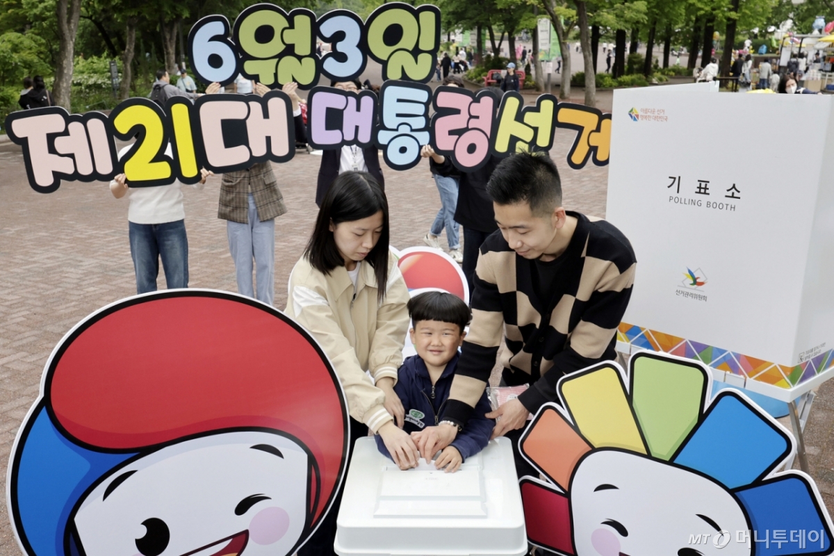 ![[서울=뉴시스] 최동준 기자 = 제21대 대통령선거 공식 선거운동을 하루 앞둔 11일 서울 광진구 서울어린이대공원에서 어린이가 가족과 함께 서울시선거관리위원회가 마련한 투표 체험을 하고 있다. 2025.05.11. /사진=최동준](https://thumb.mt.co.kr/cdn-cgi/image/f=avif/21/2025/05/2025051211235988962_1.jpg)