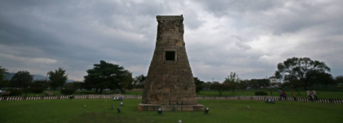 향로는 정성껏 향을 피워 하늘에 닿게 하는 제기이자 불보살에게 향을 공양하는 도구다. 향을 피워 연기를 올리려면 하부에서 공기가 공급되고 상부는 열려 있어야 한다. 사다리를 타고 올라가 첨성대 허리에 난 구멍에 향나무를 넣고 불을 붙인 후 내려와 사다리를 치우면 연기가 상부의 구멍으로 피어 올라간다. 향로의 규모가 커지면 봉수대와 그 구조가 같아진다. 남산의 봉수대를 보면 첨성대와 구조가 똑같다. 둘 다 연기를 피워 올리는 시설물이기 때문이다. 3D프린터로 첨성대를 출력하고 그 속에 향을 피워 보았다. 완벽한 향로였다. 수백 개의 고분으로 이뤄진 거대한 신전, 그 앞에 세워진 첨성대.
