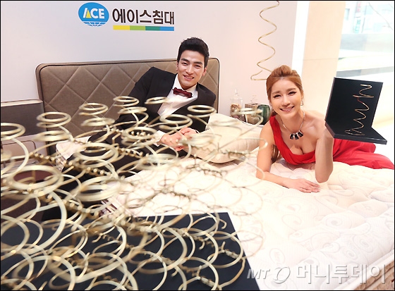 에이스침대가 3일 오전 서울 소공동 웨스틴조선호텔에서 세계특허 하이브리드 Z 스프링을 적용한 신제품 매트릭스 '뉴 하이브리드 테크 시리즈' 출시기념행사를 진행하고 있다.