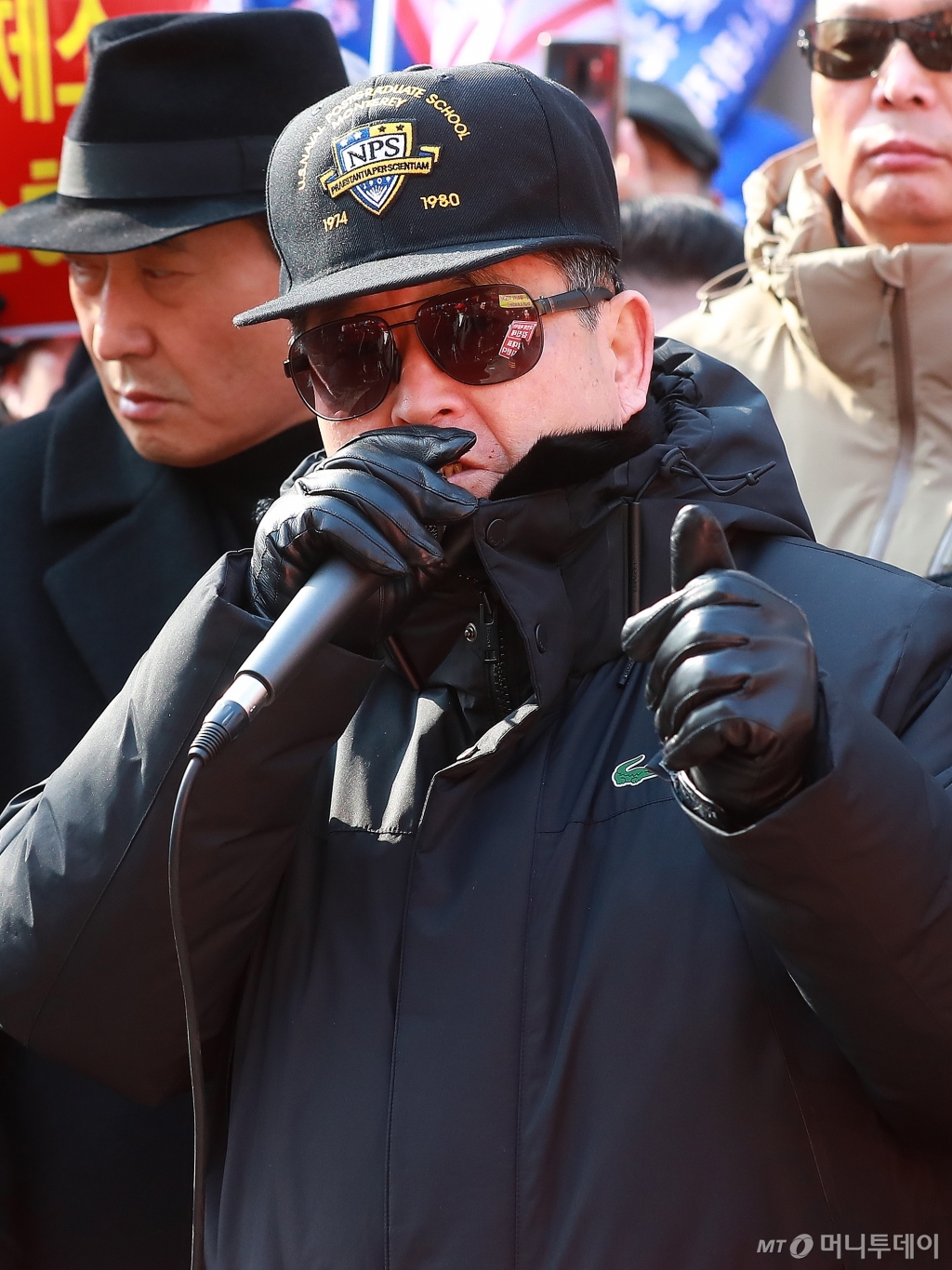 최근 '5.18 망언'으로 물의를 빚고 있는 극우성향의 지만원이 13일 오전 서울 여의도 기계회관 앞에서 열린 김진태 윤리위 제소 반대 기자회견에서 발언을 하고 있다.