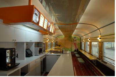 열차카페는 간단한 식.음료를 즐기는 스넥 공간과 섹션별 문화체험 공간으로 구성된다. 이색적인 곳은 노래방 시설이 갖춰진 미니콘서트룸(2곳)과 여행객의 피로를 덜어 줄 테라피룸(1곳)이다.