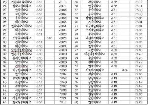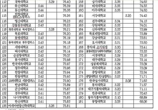 반면 △중앙대 △대구대 △강원대 △서강대 △아주대 △영남대 △계명대 △명지대 △충북대 △경희대 등은 학점이 박해 학사관리가 비교적 엄격한 것으로 조사됐다.