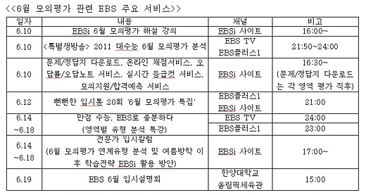 EBS 측은 "6월 모의평가는 EBS 수능 강의와의 연계도를 직접 체감하는 첫 시험대"라며 "평가 당일 해설강의에서 영역별 상세 연계 내역 분석을 통해 여름방학 성공 학습 전략을 제시할 계획"이라고 설명했다.