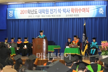 조규향 총장과 교무위원을 비롯해 재학생과 교수, 학부모 등이 참석한 가운데 석사 학위수여식은 오전 11시, 박사 학위수여식은 오후 2시에 각각 거행됐다.