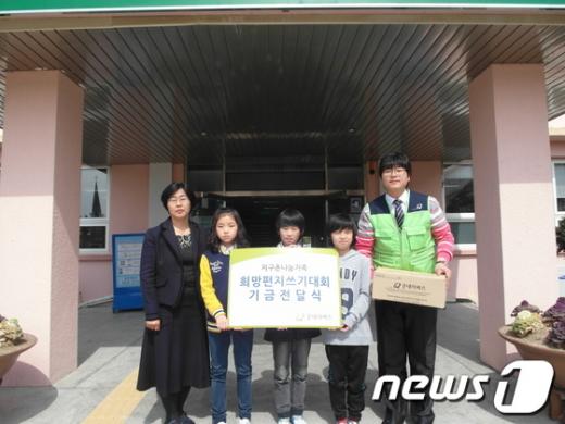 경남 함안 칠원초 조순화 교감과 학생들이 희망쓰기 편지와 성금을 모았다. (칠원초등 제공) News1