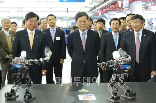 김 국무총리는 지난 9월 개관한 창의융합제조센터를 방문해 학생들의 창의융합실습 과정과 로봇 동아리 '가제트'팀이 제작한 로봇의 춤을 관람했다.