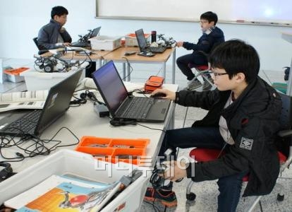 한국기술교육대학교 ‘로봇중점 노벨연재교육원’에서 로봇교육을 받고있는 중학생들 모습