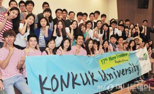 건국대가 타문화에 대한 견문을 넓혀 국제경쟁력과 진취적인 도전정신을 갖춘 인재를 육성하기 위해 진행하는 해외탐방 프로그램 ‘PRIDE KU 뉴 프론티어’의 발대식이 24일 교내 법학전문대학원 국제회의장에서 열렸다.