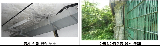우선 곰이 살고 있는 우리는 전시 방사장 4곳과 뒷면 방사장 4곳의 콘크리트가 파손됐다. 이 우리엔 반달가슴곰 등 6종의 32마리의 곰이 사육되고 있다. 건물 옥상 누수 3곳 , 지반균열 1곳 등 각종 시설도 노후화 돼 동물탈출 방지가 어렵다는 대공원의 진단도 나왔다.