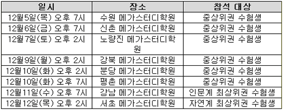 ◇강남∙서초 등 메가스터디 직가맹 학원 8곳에서 순차적으로 진행