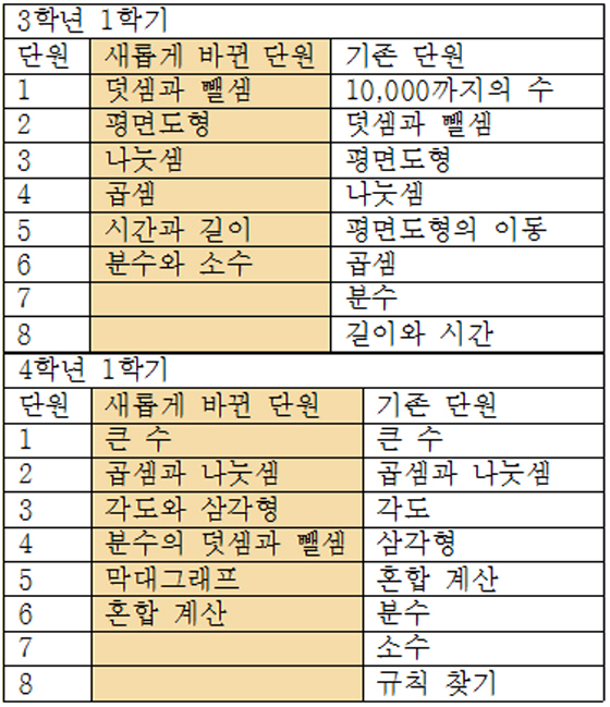 관련 기사 : 초등학교 3~4학년 수학, 바뀌는 것과 바뀌지 않는 것