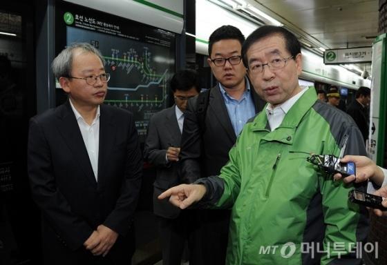 한편 박 시장은 이날 오전 5시39분 시청역에서 2호선 첫 차를 탑승해 성수역으로 이동, 신호체계 등을 점검했다. 지난 3일에는 오전 0시17분 사고이후 정상 개통된 지하철을 타고 귀청했다.