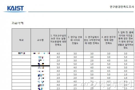 카이스트(KAIST) 대학원총학생회가 교수들과 연구실을 대상으로 실시한 만족도 평가를 학교 전 구성원에게 공개했다. 초유의 사태에 교내에서 "지나치게 공격적"이라는 비판이 제기되고 있다.