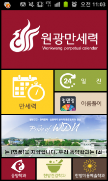 원광디지털대학교(총장 성시종, www.wdu.ac.kr)는 무료 모바일 어플리케이션 '원광만세력'의 업그레이드 2.0버전을 출시했다고 4일 밝혔다.