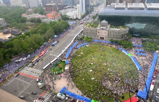 서울광장 '허가제'로 바꿔달란 조례개정 서명 9만1123건 서울시에 접수…유효서명 확인돼 청구 수리시 서울광장 '신고제 vs 허가제' 논란 재점화