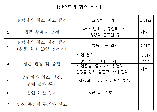 한유총은 서울시교육청의 허가를 받아 설립된 사단법인이다. 민법 제38조에 따르면 공익을 해하는 행위를 저질렀을 때 주무관청이 그 허가를 취소할 수 있다.