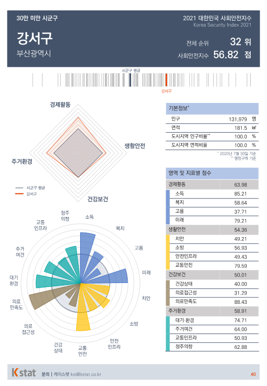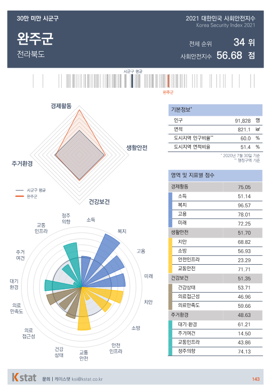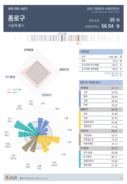 전국 시·군·구 중 표본 숫자가 적은 지역을 제외한 155곳을 대상으로 경제활동, 생활안전, 건강보건, 주거환경을 종합한 사회안전지수 순위를 매겼다.