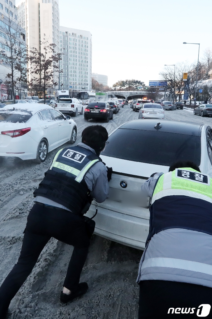 (수원=뉴스1) 조태형 기자 = 7일 오전 경기도 수원시 영통구 광교로에서 경찰들이 밤사이 내린 눈으로 언덕 길에서 미끄러지는 차량들을 밀고 있다. 2021.1.7/뉴스1 <저작권자 © 뉴스1코리아, 무단전재 및 재배포 금지> 독자들의 PICK! 박서진, 母 수술 숨긴 부모에 절연 선언 "인연 끊자…난 가족 없다" '연매출 100억' 김준희, 매장 털렸다..."주얼리 도난" "신동엽이 축의금 1억, 순박했다"…김원훈 너스레에 '눈살' "디즈니 주스 먹자며 7세부터 강간"…'마이클' 개봉일에 4남매 소송