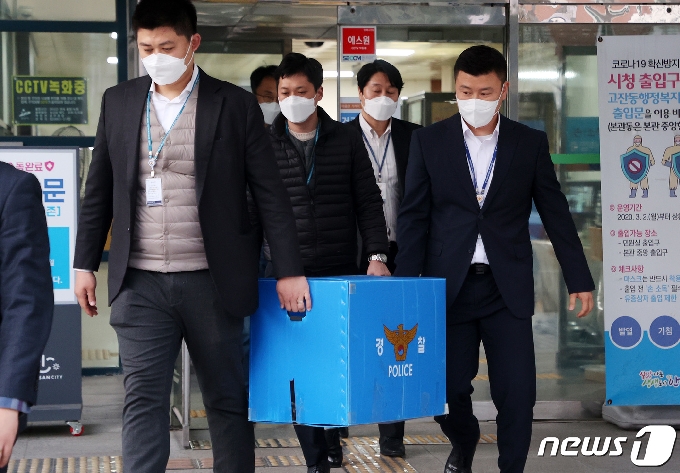 (안산=뉴스1) 조태형 기자 = 29일 오후 경기도 안산시청에서 경기남부경찰청 부동산투기사범 특별수사대원들이 전해철 행정안전부 장관의 전 보좌관 가족을 둘러싼 땅 투기 의혹과 관련해 압수수색을 마치고 압수품을 옮기고 있다. 2021.3.29/뉴스1 <저작권자 © 뉴스1코리아, 무단전재 및 재배포 금지> 독자들의 PICK! 윤미래, 뒤늦게 알려진 사망 소식..."긴 여행 떠나" 동서와 갈등→파혼 2번 아내..."조카는 남편 아이" 의심 충격 추성훈, '파격' 누드 화보 공개…"돈 안 받아, ♥야노 시호도 촬영" "남성 의사가 은밀한 곳 봤잖아" 이혼 선언…산부인과서 난동