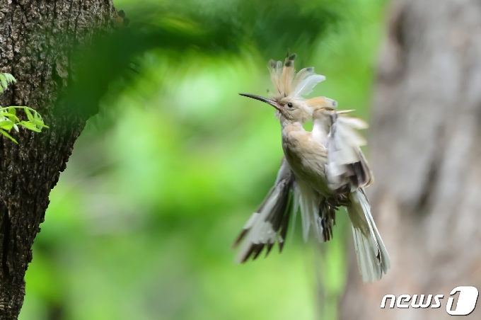 (경주=뉴스1) 최창호 기자 = 깃털이 흰색인 후투티가 12일 경북 경주시 옥산서원 인근 나무에서 새끼들에게 먹잇감을 물어다 주는 모습이 국내 언론 최초로 포착됐다. 여름새인 후투티는 몸통이 갈색 빛이지만 이번에 발견된 후투티는 목과 몸통, 꼬리깃이 흰색이다. 알비노개체에 대한 연구는 현재 전무하다 할 정도이지만 최근 알비노개체의 잦은 출현을 보고 학자들은 환경의 변화가 가장 큰 요인으로 보고 있다. 2021.5.12/뉴스1