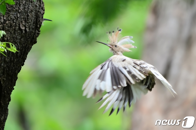 (경주=뉴스1) 최창호 기자 = 깃털이 흰색인 후투티가 12일 경북 경주시 옥산서원 인근 나무에서 새끼들에게 먹잇감을 물어다 주는 모습이 국내 언론 최초로 포착됐다. 여름새인 후투티는 몸통이 갈색 빛이지만 이번에 발견된 후투티는 목과 몸통, 꼬리깃이 흰색이다. 알비노개체에 대한 연구는 현재 전무하다 할 정도이지만 최근 알비노개체의 잦은 출현을 보고 학자들은 환경의 변화가 가장 큰 요인으로 보고 있다. 2021.5.12/뉴스1