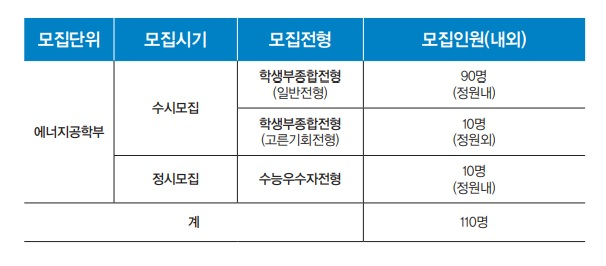 ▶우리 학교는 정원외 인원을 포함해 총 110명을 뽑는다. 세계에서 가장 작은 대학일 것이다. 그래서 전형 자체를 분리시키는게 매우 어려웠다. 선발하는 인재상도 단순하고 정원도 적다보니 여러 개 전형을 나누기가 힘들었다. 만약 교육부 모집전형계획 기본사항을 따르려 들면 농어촌전형이나 저소득층 전형 정원은 전체의 5.5%만 뽑을 수 밖에 없다. 정원외로 5명 밖에 뽑지 못했을 거란 얘기다. (켄텍의 설립과 모집정원 등은 한국에너지 공과대학교 특별법을 따른다.) 하지만 우리대학이 가진 사회적 책무성도 있고 형편이 힘든 학생들을 뽑자는 의지가 강했기 때문에 두 배로 확대한 것이다. 노력해서 많이 배정한 것이다.