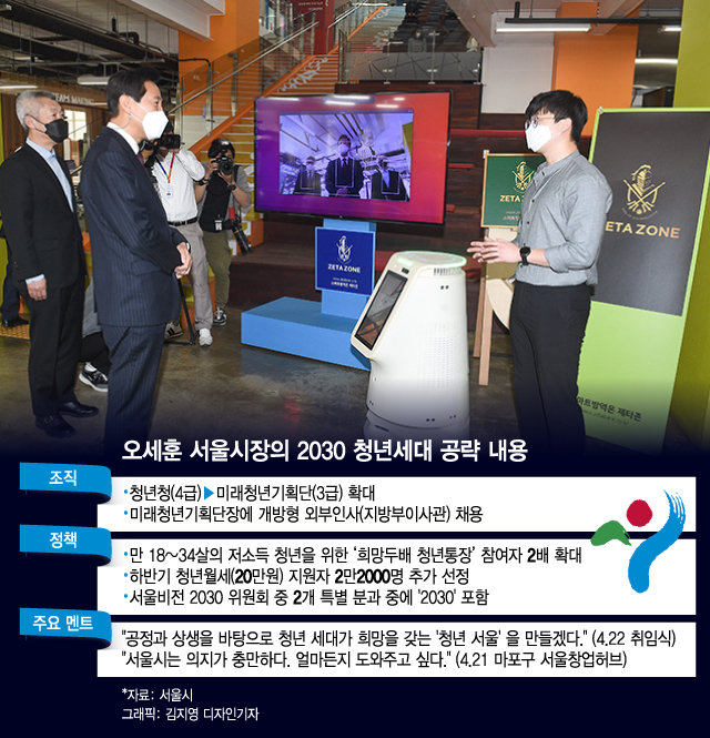 오 시장은 지난 4월 취임식에서 "공정과 상생을 바탕으로 2030 청년세대가 희망을 가지는 '청년 서울'을 만들겠다"고 밝히는 등 기회가 있을 때마다 청년세대를 강조하고 있다.