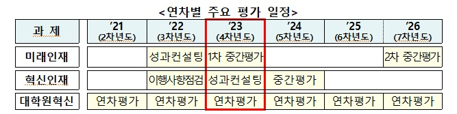 교육부는 늘어난 예산을 바탕으로 우수성과에 대한 인센티브도 적극 부여해 지속적인 성과창출을 독려할 방침이다. 올해 '미래인재 양성사업'에 참여하는 369개 교육연구단에 대한 중간평가를 실시해 상위 20% 연구단엔 사업비 외 추가 성과금을 지급한다. 연구성과가 우수한 참여박사생 200명에게 연간 최대 2600만원씩 해외연수 비용을 지원하고 해외 연구자와 네트워크를 구축할 기회를 부여한다. 단 앞서 예고한대로 하위 30% 연구단은 사업에서 탈락시키고 새로운 교육연구단으로 재선정한다.