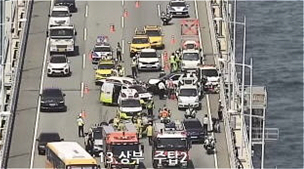 연중 추돌사고로 인해 광안대교는 한동안 통제됐고, 오후 3시께부터 차량 통제가 풀렸다.